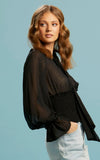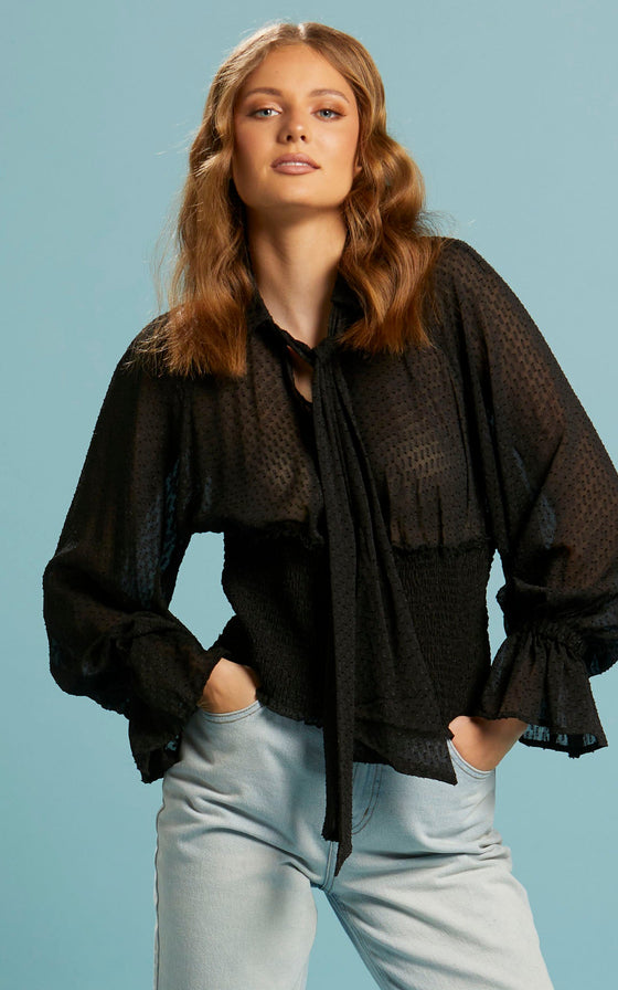The Be Loved Shirred Bodice Top is a chic go-to piece that effortlessly transitions from work to evening. Its shirred waist bodice creates a flattering silhouette, while the soft collar seamlessly transitions into a self-neck tie, adding a touch of sophistication. The oversized sleeves with frill cuffs exude a feminine charm and elegance. Experience versatility and timeless style with the Be Loved Shirred Bodice Top, a must-have addition to your wardrobe.