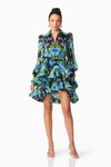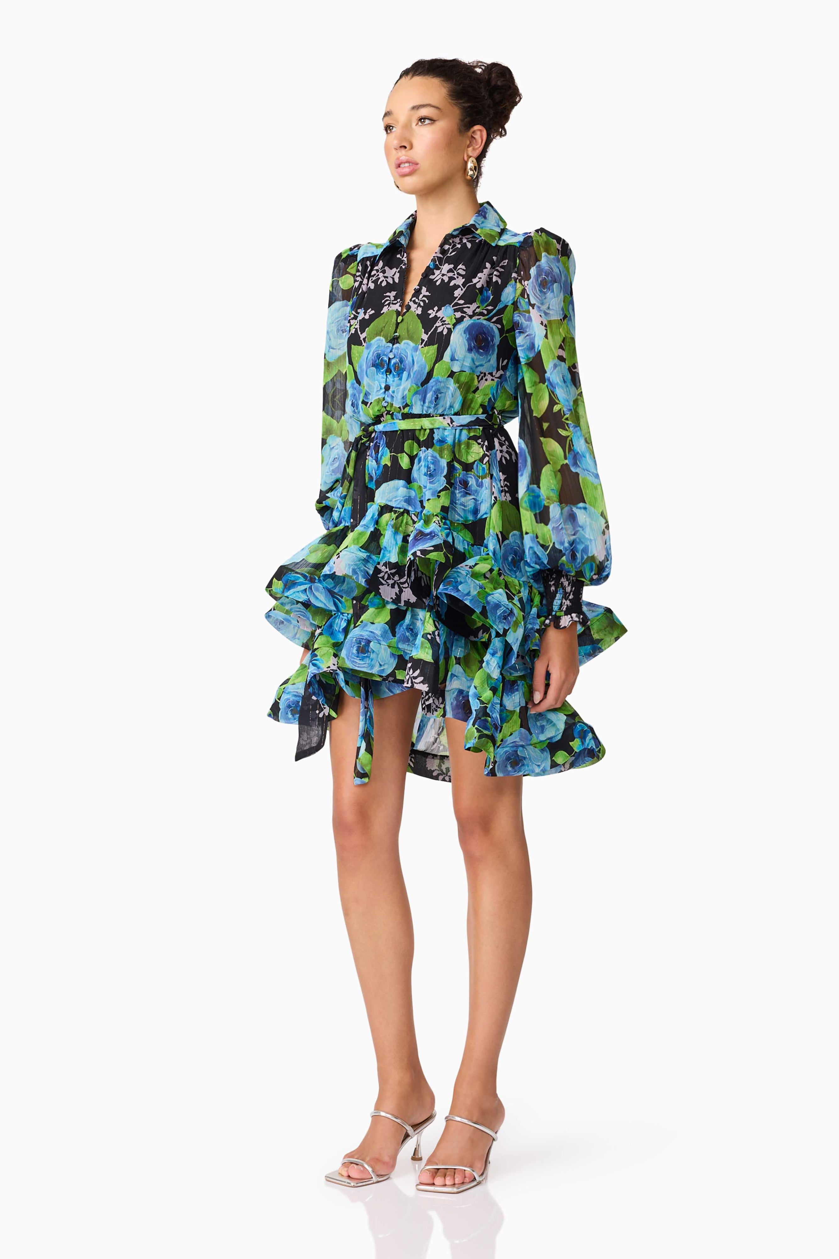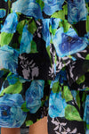 Stunning light weight fabrication with metallic thread. Features an elastic waist for comfort with fabric waist tie, shirred cuff and button up front. Perfect for a garden party, race day or wedding.