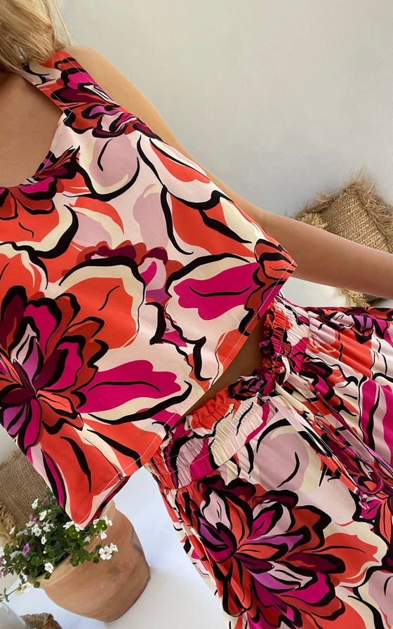 The Cosmo Crop Top is an exclusive print! This gorgeous crop goes perfectly with the matching Cosmo Pant, or team her with a pair of high waisted jeans and sneakers.