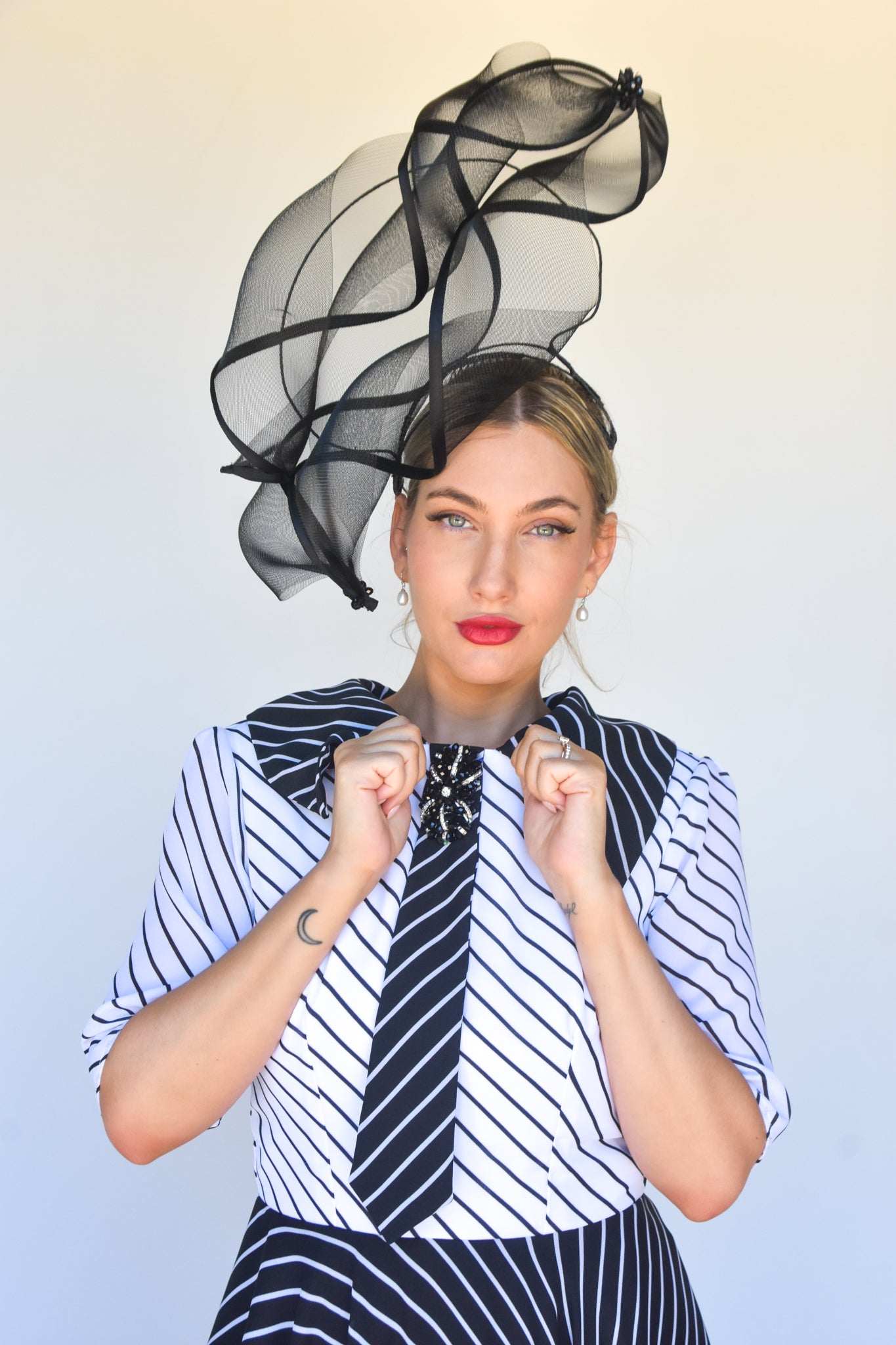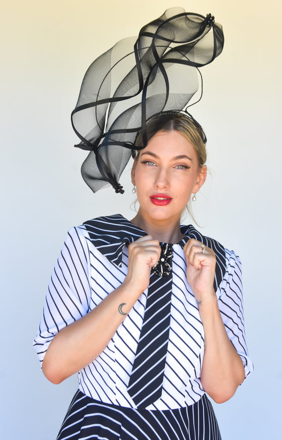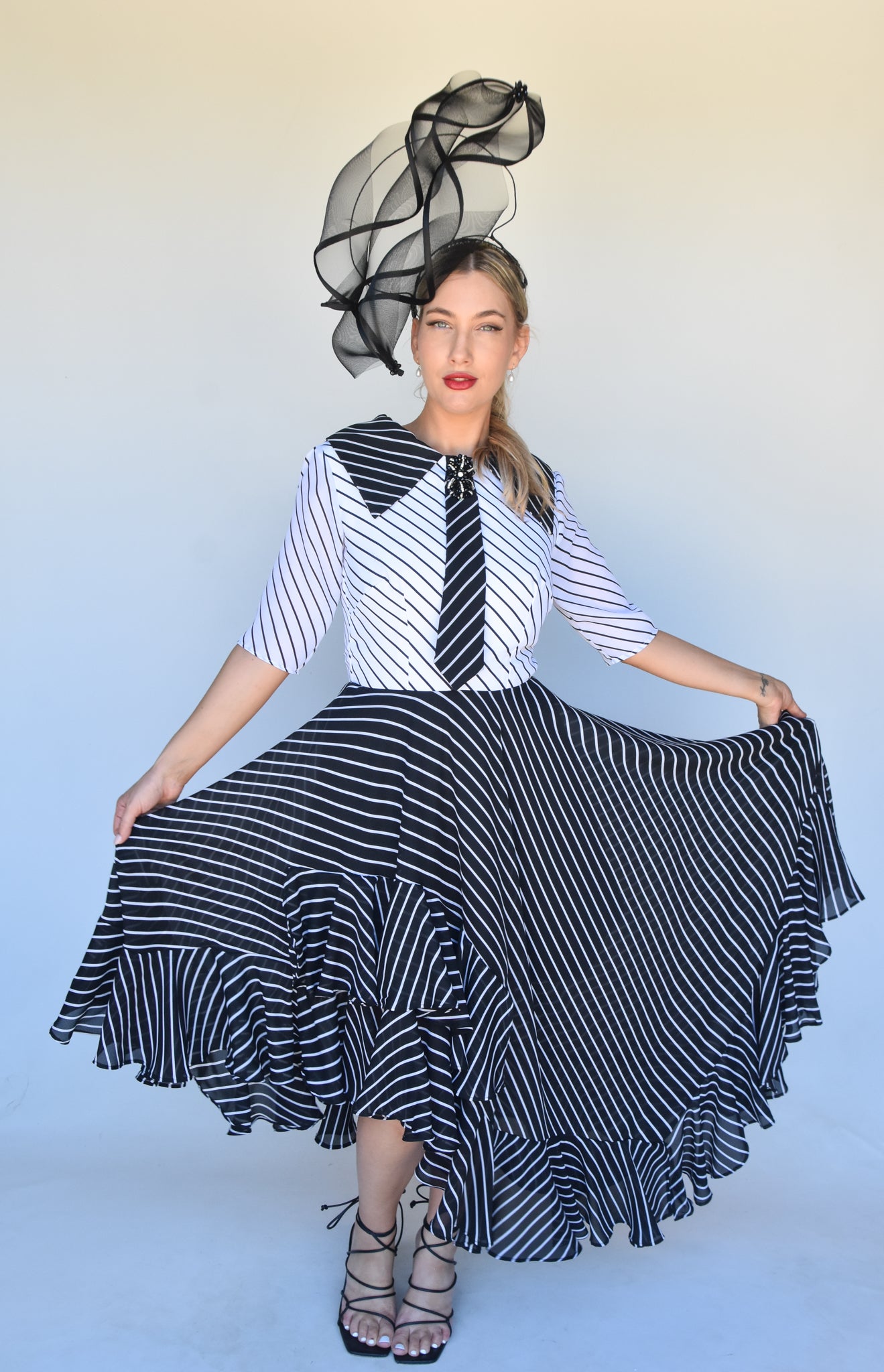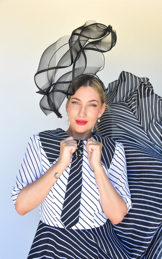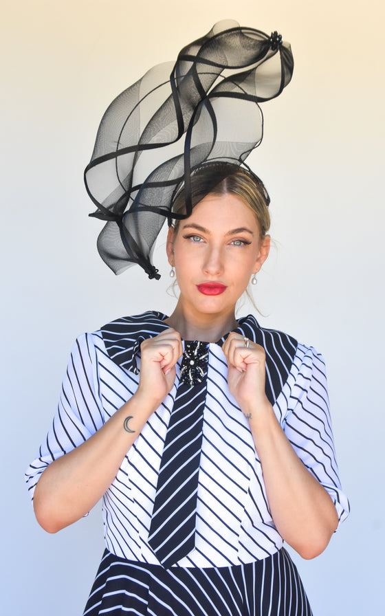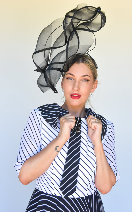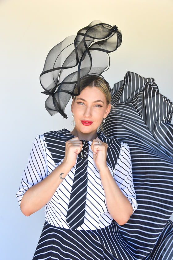 This stunning dress & millinery is a handmade one off creation by Sonlia.