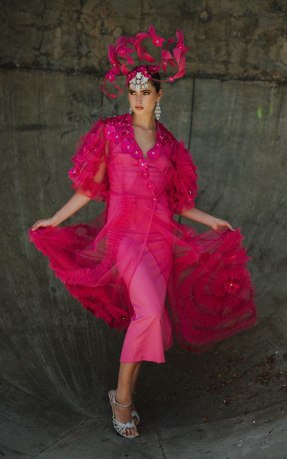 Beneath the ethereal exterior sits a structured dress, offering strength, support, and form. This inner layer can be worn on its own, allowing the wearer to choose how boldly or subtly she wishes to express her femininity.