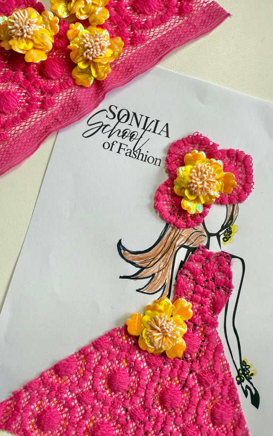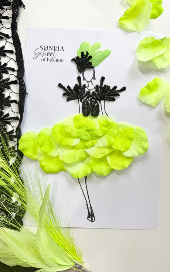 3D fashion illustration: Take home your own couture design on an A3 page where you will use real textiles to create an outfit on an illustrated template.