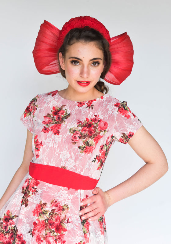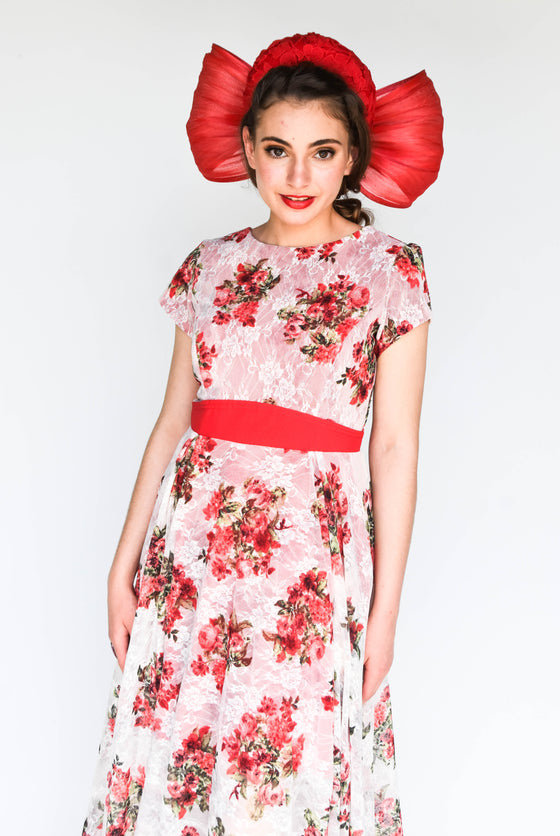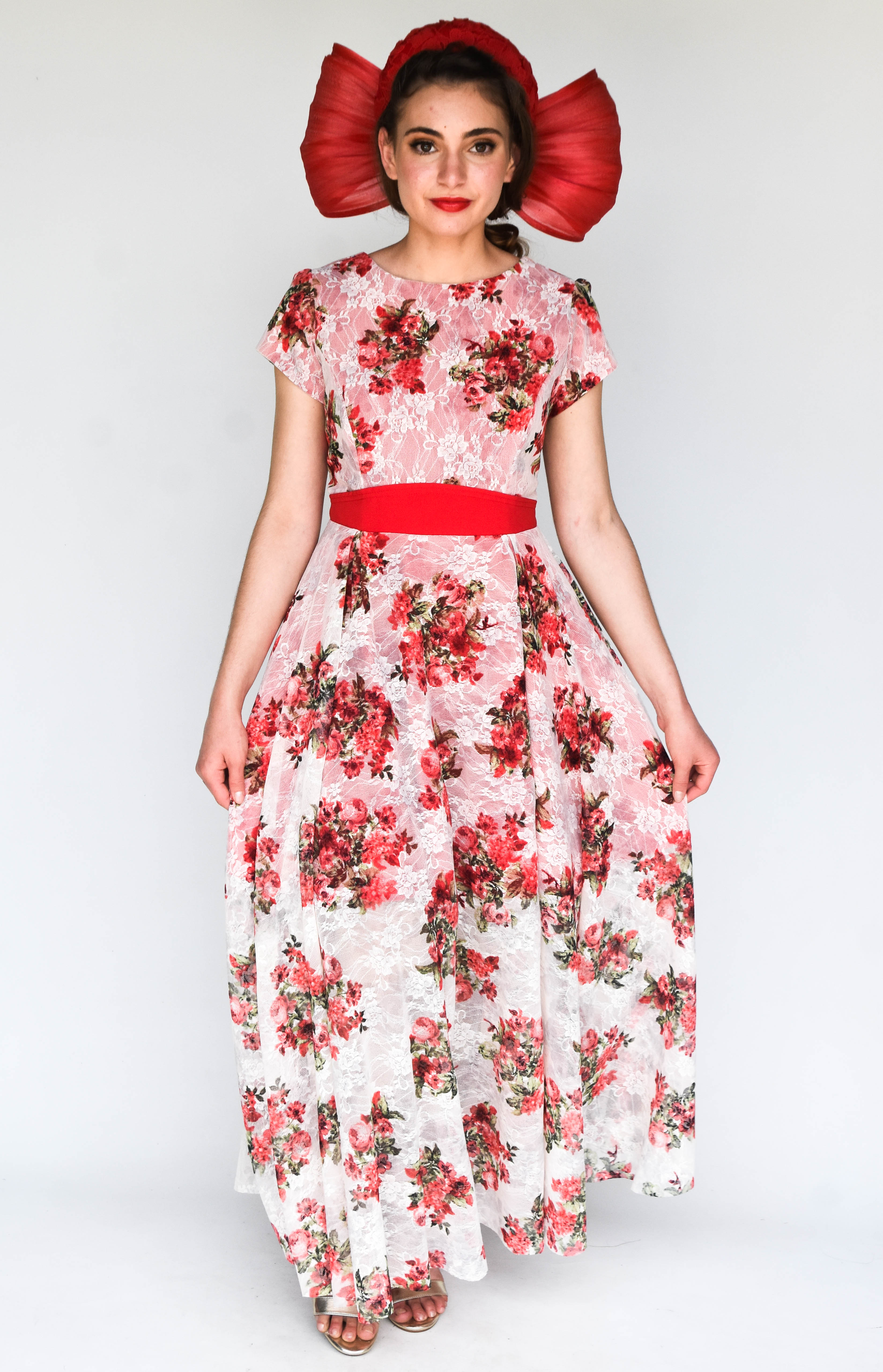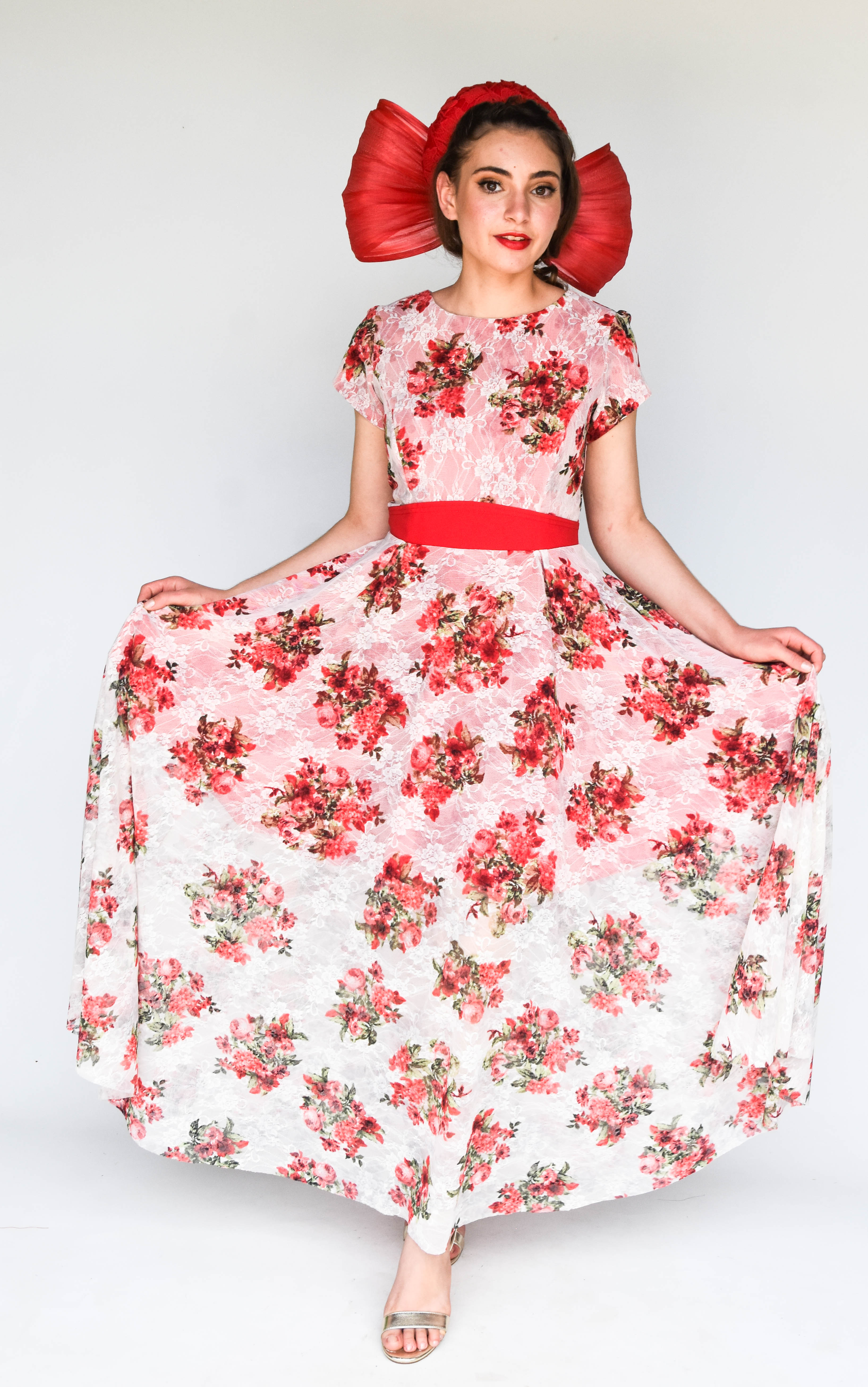 This stunning dress and millinery is a handmade one off creation by Sonlia.