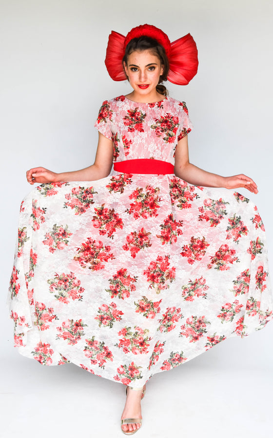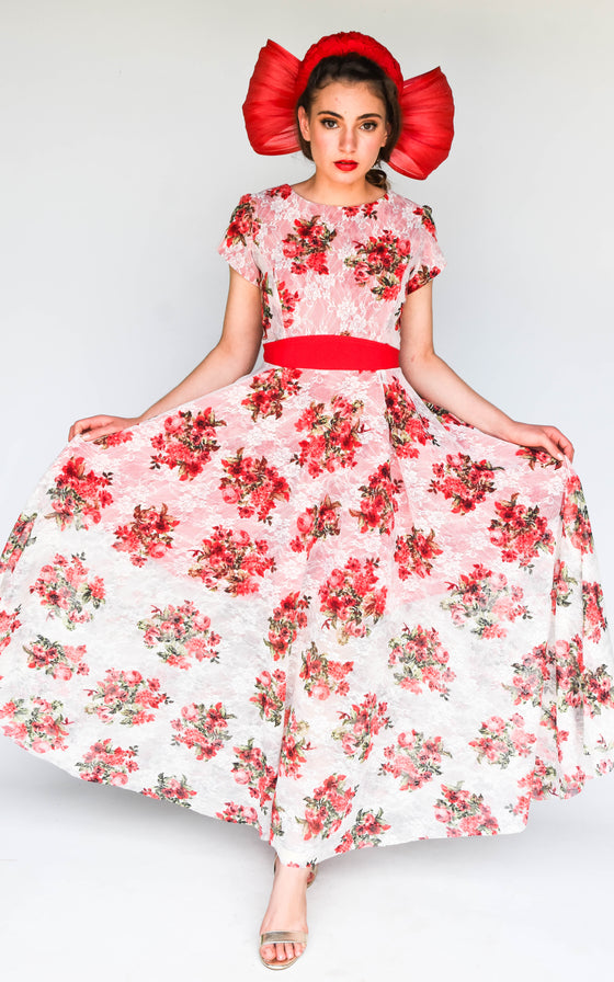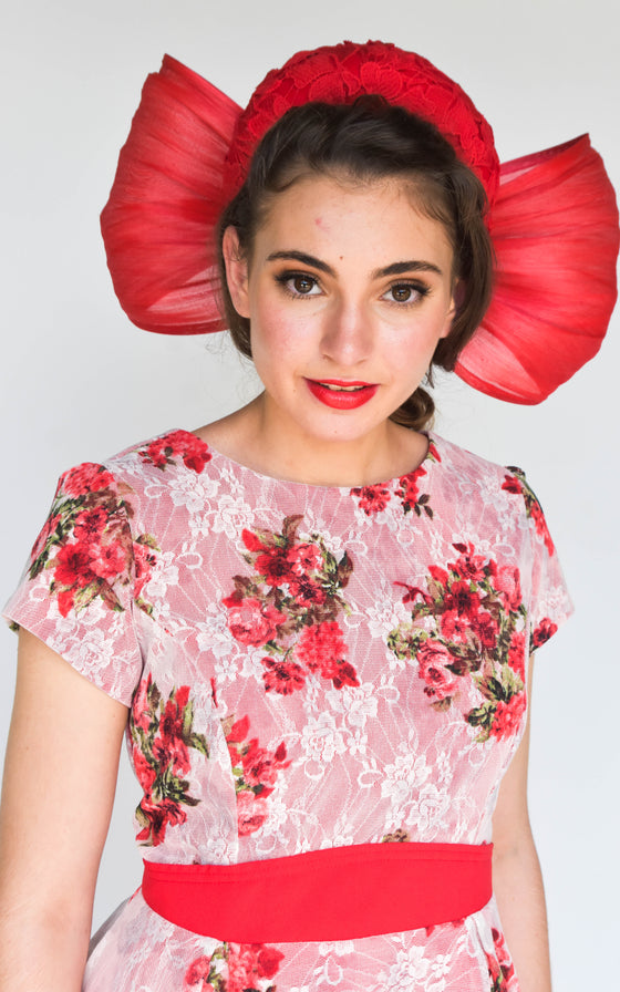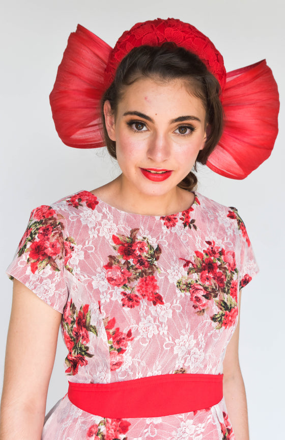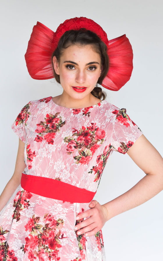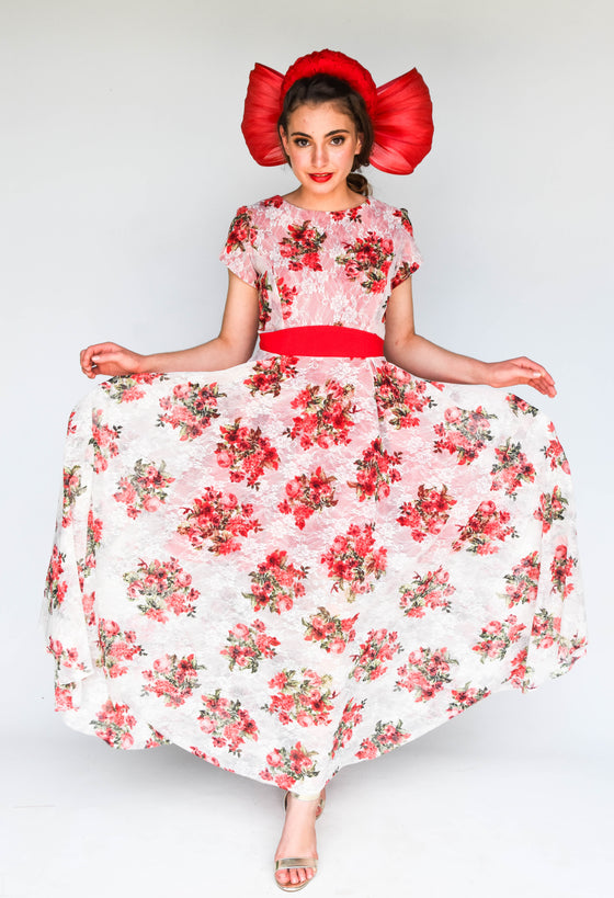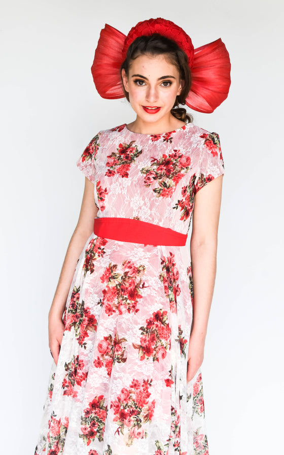 This stunning dress and millinery is a handmade one off creation by Sonlia.