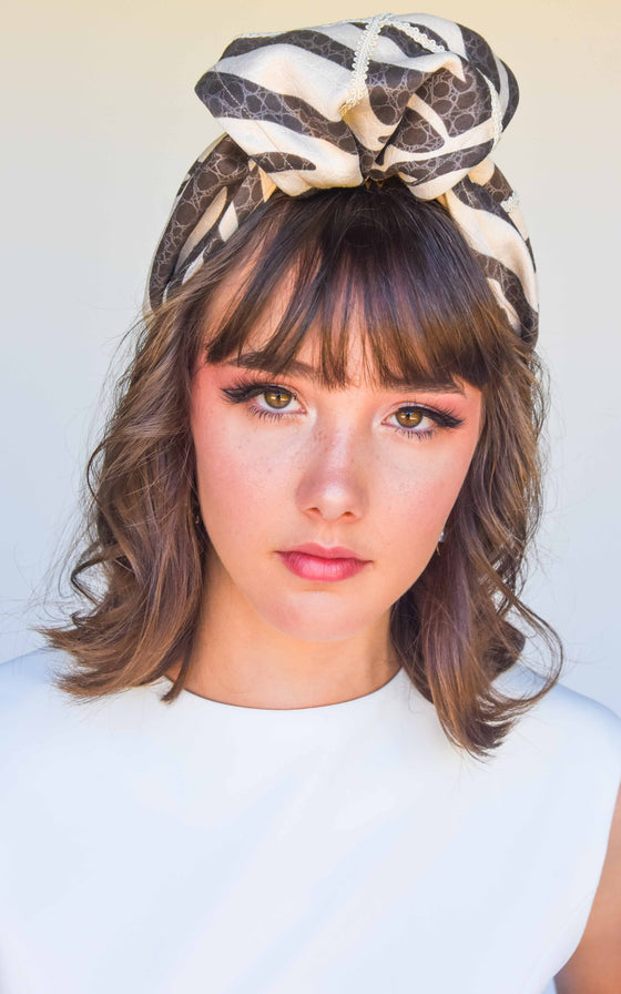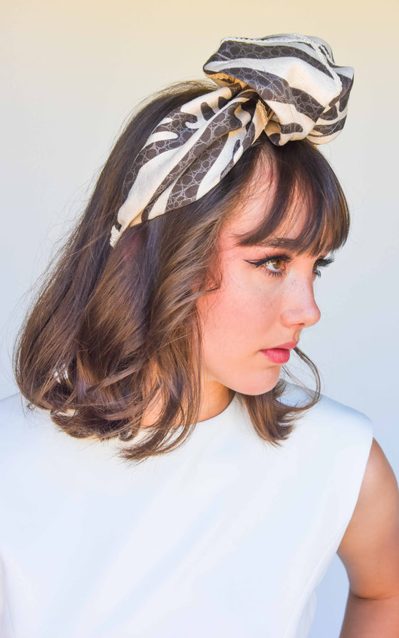 Easy to wear, this piece has been made onto a headband and secured in place with a comb.