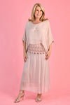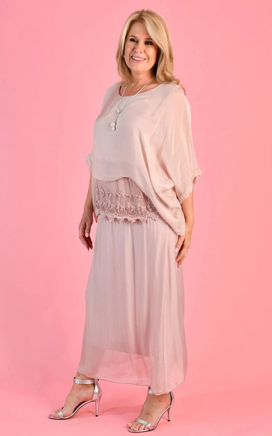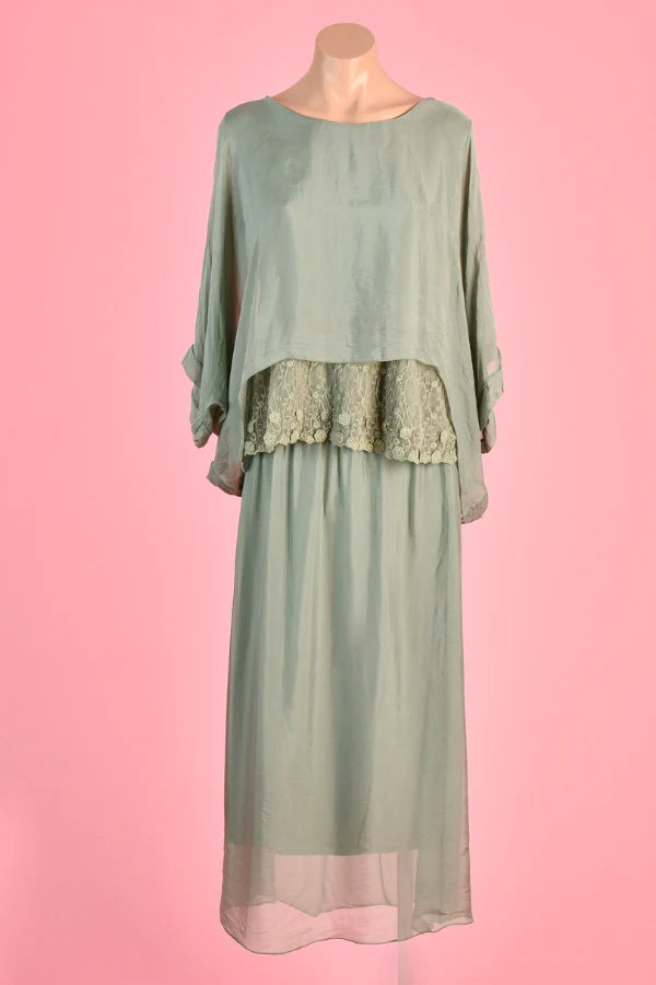Introducing our Marta Silk Maxi Skirt and Top set ! An elegant piece that will wisp you away to your dream European holiday, the Italian Silk is heavenly and the cut of the skirt is super flattering on all body types whilst the beautiful lace detailing in the top is super luxurious made from Italian Silk with a gorgeous round neckline and flowy sleeve creating a stunning silhouette!