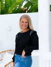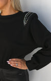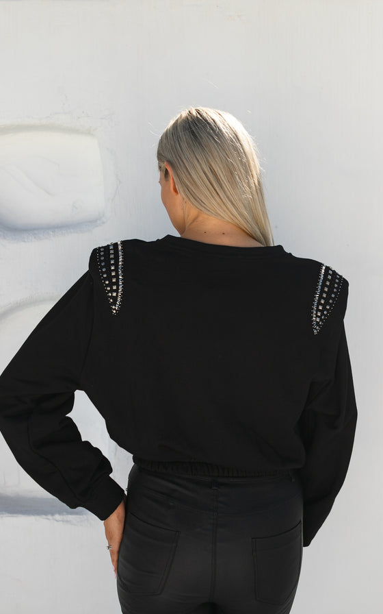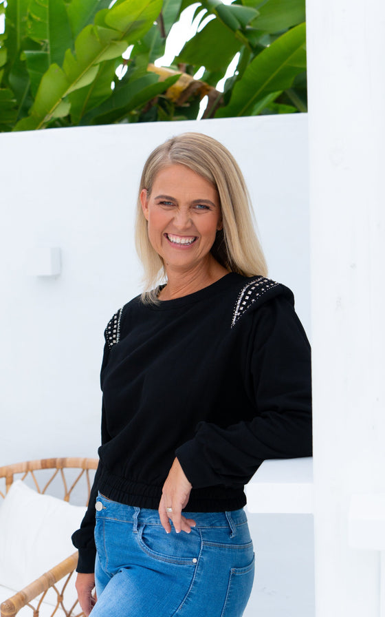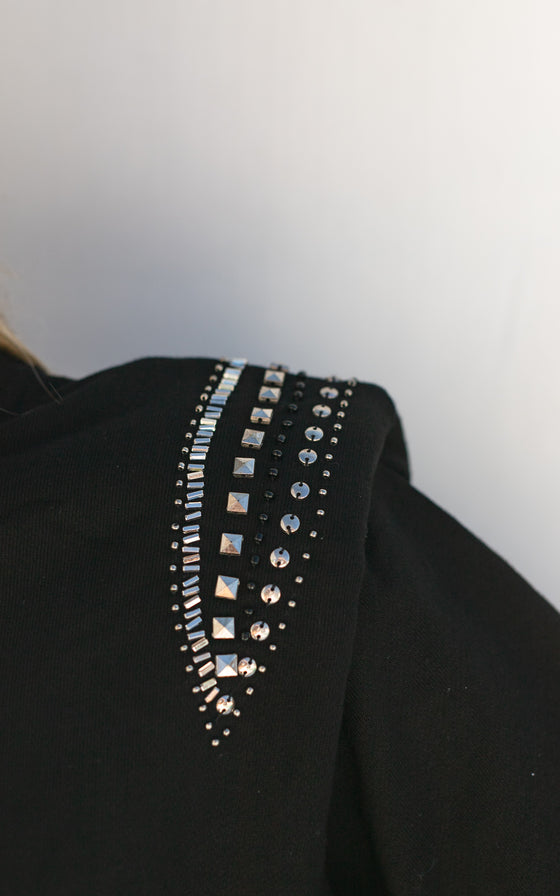 Shoulder-padsRound neck Elastic cuffs Elastic waist Bead detail on shouldersFabrication: 100% Cotton