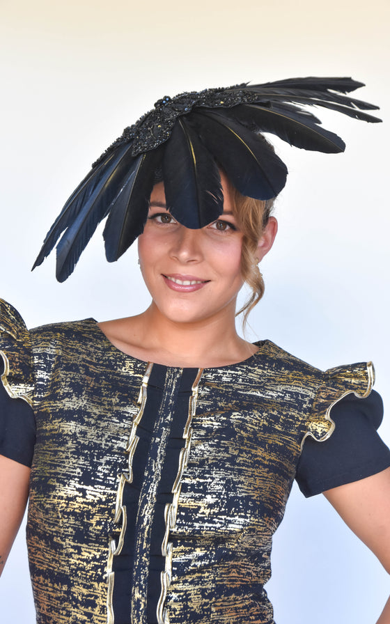 Easy to wear secured with a comb & hat elastic. This is a perfect piece for a Spring/Summer event or race day.One off creation handmade with love by the Sonlia team.Made in Australia