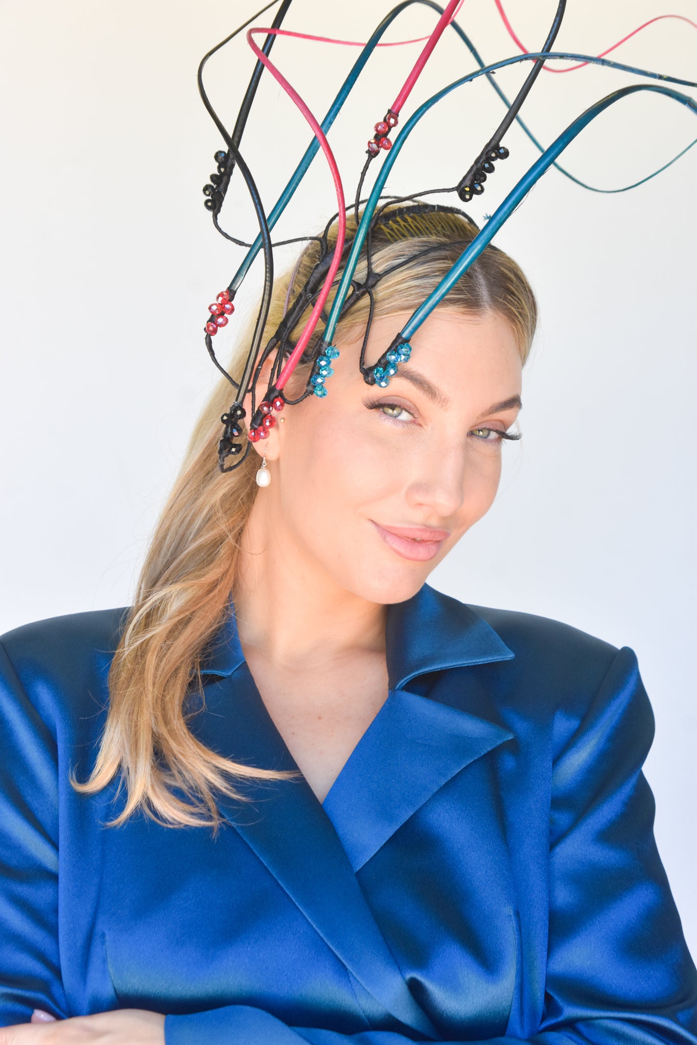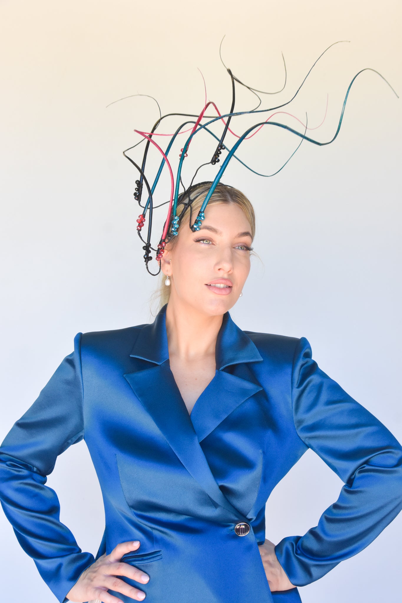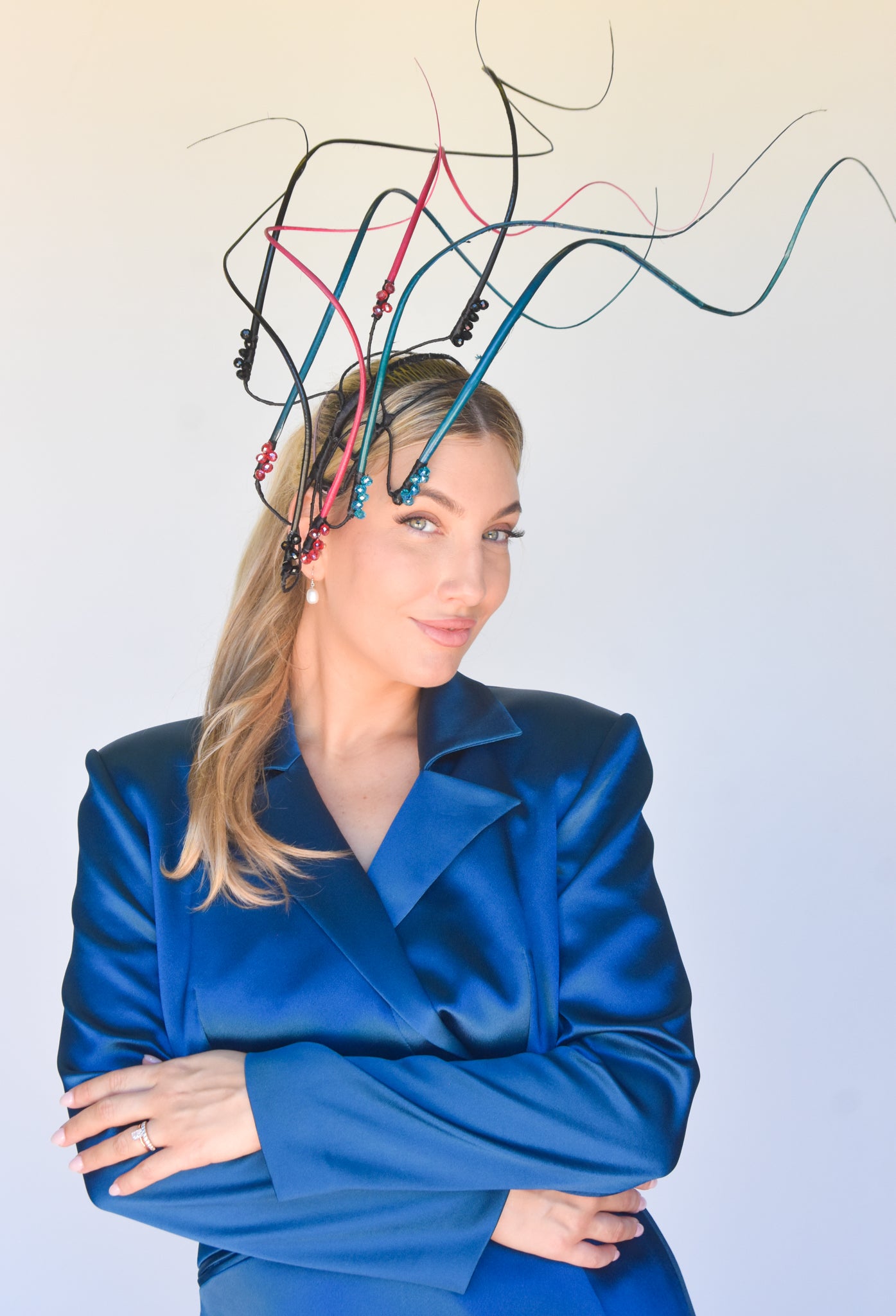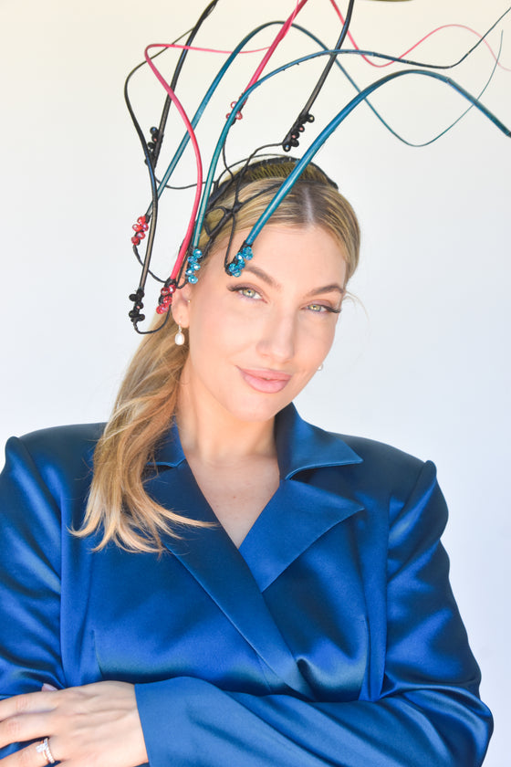 Easy to wear secured on a headframe with comb. This is a perfect piece for a Spring/Summer event or race day. One off creation handmade with love by the Sonlia team.Made in Australia
