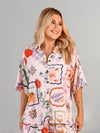 - 100% Rayon- Elastic waistband - Button through - Collar - Drop shoulder sleeve