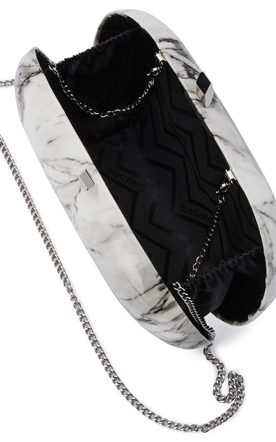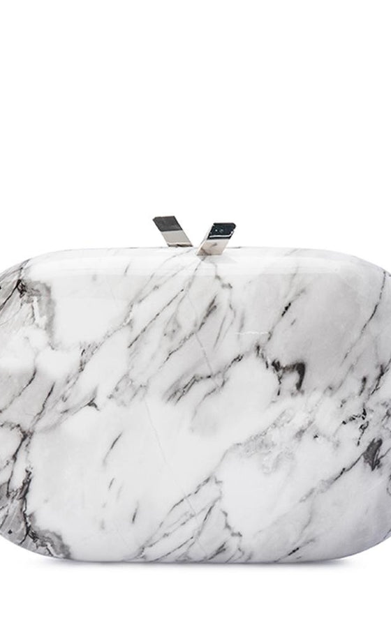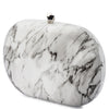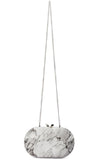 The Quartz Oval Clutch features a realistic Marble print covering a sleek oval shape with a magnetic bunny ear closure and is large enough to fit all of your event essentials including a large smart phone. This clutch includes a removable shoulder chain for those "hands free" moments!
