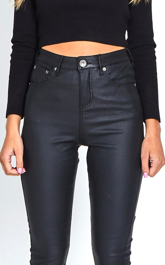 An absolutely gorgeous pair of high-rise jeans that you will surely love. Pairs perfectly with a wide range of tops. The Selena Jean Black Wet Look has a skinny leg design which will accentuate your natural curves. These jeans will take you from weekday through to the weekend with ease. Their wet-look finish adds instant style to any look.