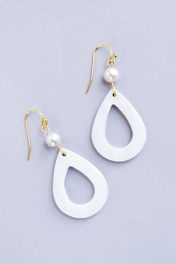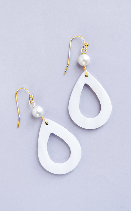 Summery Pearl & White Teardrop Shell Earrings