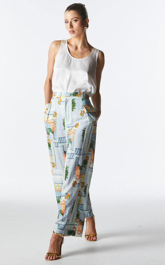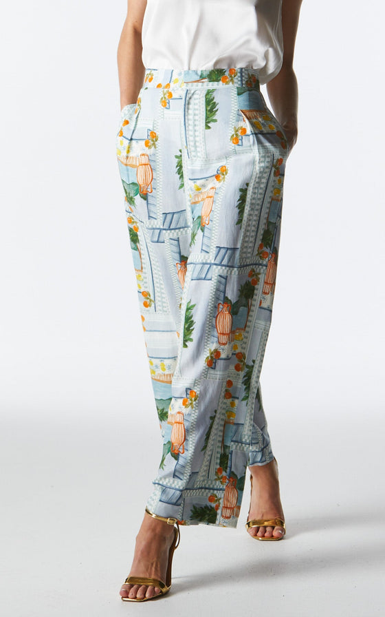 The Terrace Pant pairs tailored elegance with comfort, featuring a fly front, cropped length, and functional side pockets. The high-waisted fit with an elasticated back waistband is both polished and effortlessly stylish.