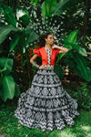 This millinery is a true couture triumph. Taking countless hours to construct, it features a dramatic fan-like structure that radiates from the crown in sculptural arcs. Each feather is individually shaped and attached to wirework that creates an extraordinary sense of height, movement, and presence.