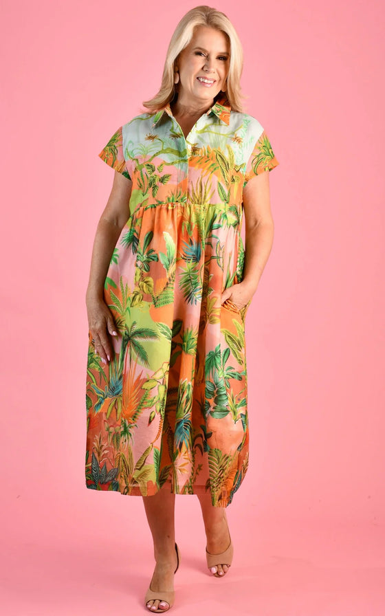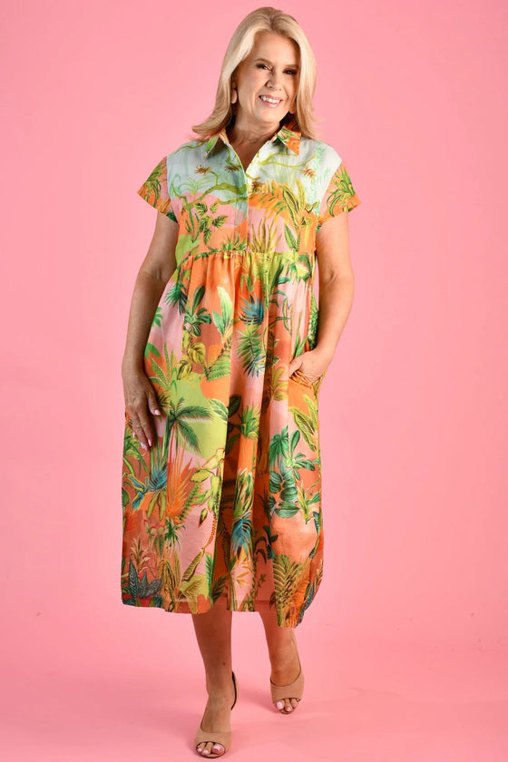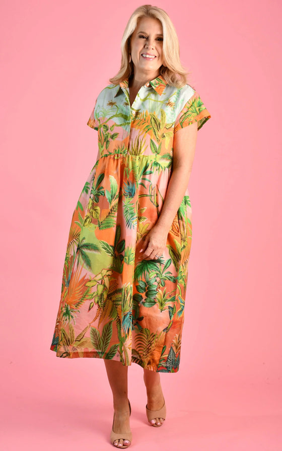 Your new favourite collared midi dress has arrived! Made from beautiful authentic cotton, this piece features a cap sleeve, quarter button detail with a loose skirt and pockets either side. What's not to love! 100% Cotton