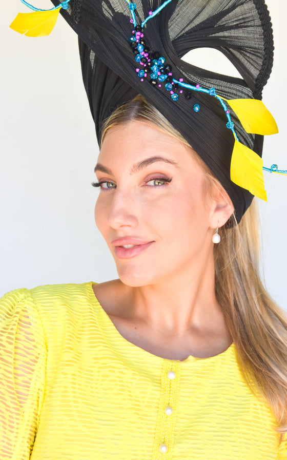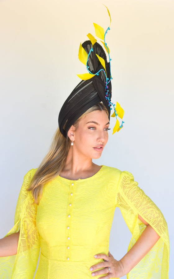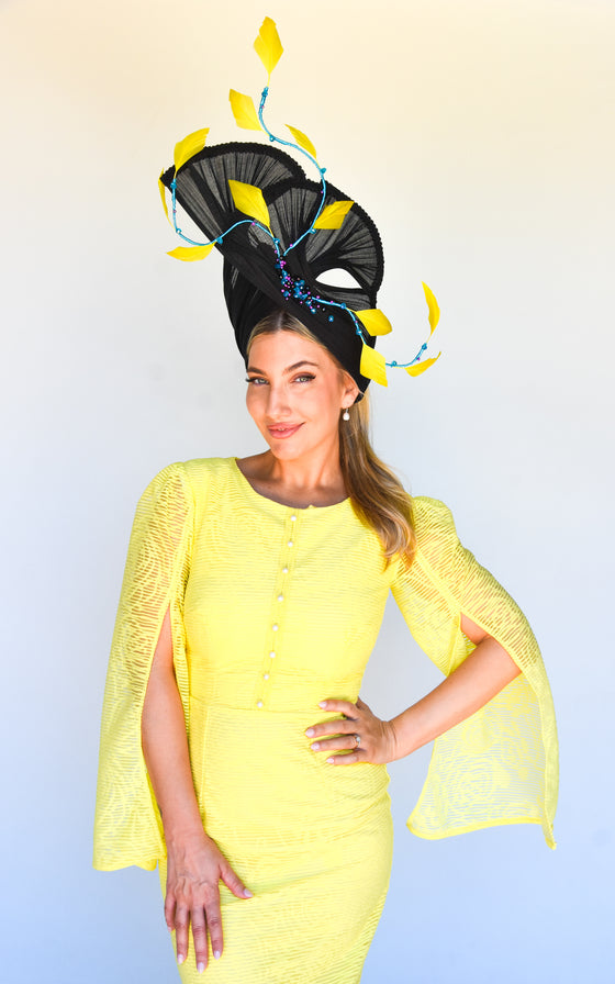 Easy to wear secured with a comb. This is a perfect piece for a Spring/Summer event or race day. One off creation handmade with love by the Sonlia team.Made in Australia